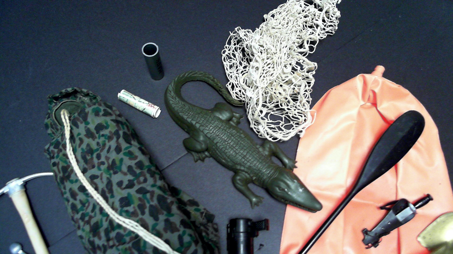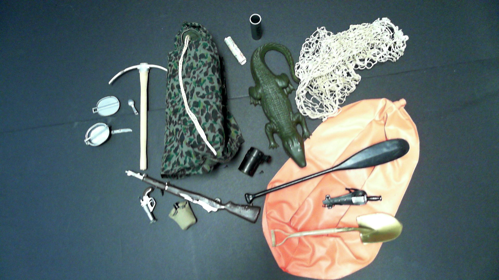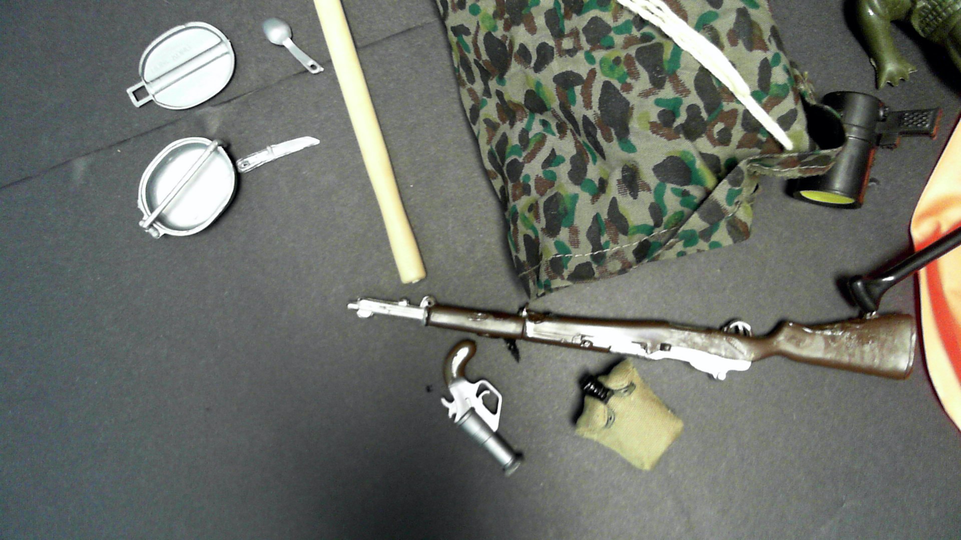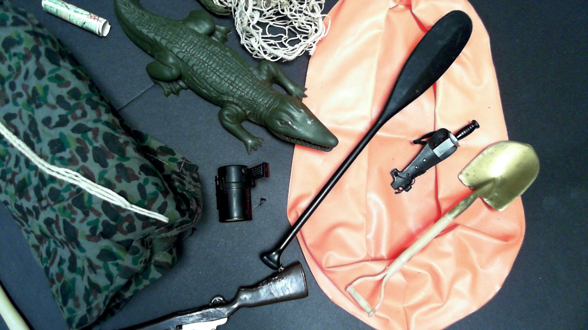 missing tent poles,helmet,rifle, Jeep, outfit